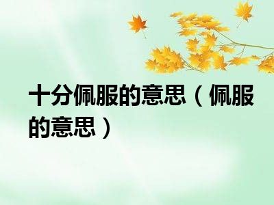 大家好,我是小前,我来为大家解答以上问题。十分佩服的意思,佩服的意思很多人还不知道,现在让我们一起来看看吧!