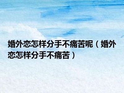 婚外恋怎样分手不痛苦呢(婚外恋怎样分手不痛苦)