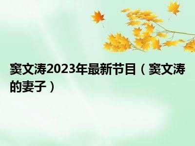 窦文涛2023年最新节目(窦文涛的妻子)