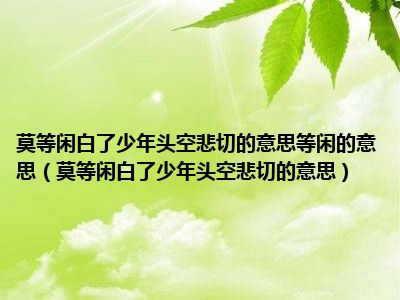 莫等闲白了少年头空悲切的意思等闲的意思(莫等闲白了少年头空悲切的意思)
