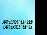 欢迎观看本篇文章,小升来为大家解答以上问题。人民币对美元汇率升值是什么意思,人民币对美元汇率升值指什么很多人还不知道,现在让我们一 浏览全文>>