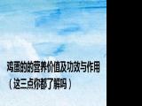 欢迎观看本篇文章,小升来为大家解答以上问题。鸡蛋的的营养价值及功效与作用,这三点你都了解吗很多人还不知道,现在让我们一起来看看吧! 浏览全文>>