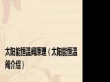 欢迎观看本篇文章,小升来为大家解答以上问题。太阳能恒温阀原理,太阳能恒温阀介绍很多人还不知道,现在让我们一起来看看吧! 1、 太阳能 浏览全文>>