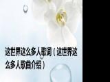 欢迎观看本篇文章,小升来为大家解答以上问题。这世界这么多人歌词,这世界这么多人歌曲介绍很多人还不知道,现在让我们一起来看看吧! 1、 浏览全文>>