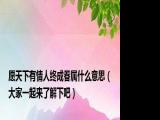 欢迎观看本篇文章,小升来为大家解答以上问题。愿天下有情人终成眷属什么意思,大家一起来了解下吧很多人还不知道,现在让我们一起来看看吧 浏览全文>>