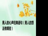 欢迎观看本篇文章,小升来为大家解答以上问题。男人的心声经典语句,男人的想法有哪些很多人还不知道,现在让我们一起来看看吧! 1、 男人 浏览全文>>