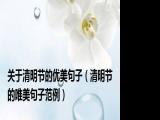 欢迎观看本篇文章,小升来为大家解答以上问题。关于清明节的优美句子,清明节的唯美句子范例很多人还不知道,现在让我们一起来看看吧! 1、 浏览全文>>