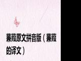 欢迎观看本篇文章,小升来为大家解答以上问题。蒹葭原文拼音版,蒹葭的译文很多人还不知道,现在让我们一起来看看吧! 1、 003010全文拼音 浏览全文>>