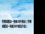 欢迎观看本篇文章,小升来为大家解答以上问题。柠檬减肥法一周瘦20斤做法,柠檬减肥法一周瘦20斤做法介绍很多人还不知道,现在让我们一起来 浏览全文>>