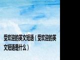 欢迎观看本篇文章,小升来为大家解答以上问题。受欢迎的英文短语,受欢迎的英文短语是什么很多人还不知道,现在让我们一起来看看吧! 1、 浏览全文>>