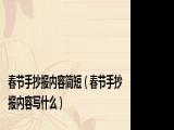 欢迎观看本篇文章,小升来为大家解答以上问题。春节手抄报内容简短,春节手抄报内容写什么很多人还不知道,现在让我们一起来看看吧! 1、 浏览全文>>