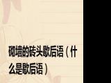 欢迎观看本篇文章,小升来为大家解答以上问题。砌墙的砖头歇后语,什么是歇后语很多人还不知道,现在让我们一起来看看吧! 1、 墙上砌砖的 浏览全文>>