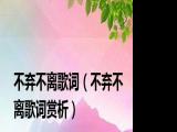 欢迎观看本篇文章,小升来为大家解答以上问题。不弃不离歌词,不弃不离歌词赏析很多人还不知道,现在让我们一起来看看吧! 1、 歌词: 2、 浏览全文>>