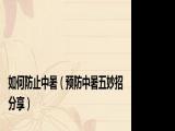 欢迎观看本篇文章,小升来为大家解答以上问题。如何防止中暑,预防中暑五妙招分享很多人还不知道,现在让我们一起来看看吧! 1、 改善生活 浏览全文>>