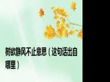 欢迎观看本篇文章,小升来为大家解答以上问题。树欲静风不止意思,这句话出自哪里很多人还不知道,现在让我们一起来看看吧! 1、 树欲静而 浏览全文>>