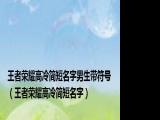 大家好,小陆来为大家解答以上的问题。王者荣耀高冷简短名字男生带符号,王者荣耀高冷简短名字这个很多人还不知道,现在让我们一起来看看吧! 浏览全文>>