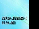 大家好,小陆来为大家解答以上的问题。安慰失去亲人的话经典语录,安慰失去亲人的话这个很多人还不知道,现在让我们一起来看看吧!1、安慰失 浏览全文>>