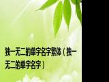 大家好,小陆来为大家解答以上的问题。独一无二的单字名字繁体,独一无二的单字名字这个很多人还不知道,现在让我们一起来看看吧!1、独一无 浏览全文>>