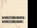 大家好,小陆来为大家解答以上的问题。海内存知己天涯若比邻的意思是,海内存知己天涯若比邻的意思这个很多人还不知道,现在让我们一起来看看 浏览全文>>