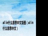大家好,小陆来为大家解答以上的问题。all in什么意思中文饭圈,all in什么意思中文这个很多人还不知道,现在让我们一起来看看吧!1、意思 浏览全文>>
