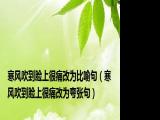 大家好,小陆来为大家解答以上的问题。寒风吹到脸上很痛改为比喻句,寒风吹到脸上很痛改为夸张句这个很多人还不知道,现在让我们一起来看看吧 浏览全文>>