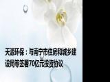 【天源环保:与南宁市住房和城乡建设局等签署70亿元投资协议】,天源环保公告,公司与南宁市住房和城乡建设局、南宁高新技术产业开发区管理 浏览全文>>