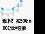 【博汇科技:拟2500万元-5000万元回购股份】,博汇科技公告,公司拟以集中竞价交易方式回购公司股份,回购金额不低于2500万元(含),不超 浏览全文>>