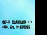 【港股午评:恒生科技指数跌7 87% 半导体、券商、汽车股跌幅居前】,港股两大指数震荡走低,香港恒生指数跌5 58%,一度跌超10%;恒生科技 浏览全文>>