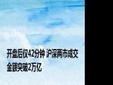 【开盘后仅42分钟 沪深两市成交金额突破2万亿】,据财联社盯盘数据显示,开盘后42分钟,沪深两市成交额突破2万亿元,较昨日此时放量超6500亿元。浏览全文>>