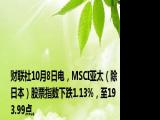 ,MSCI亚太(除日本)股票指数下跌1 13%,至193 99点。浏览全文>>