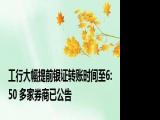 【工行大幅提前银证转账时间至6:50 多家券商已公告】据多家券商通知,工行自10月8日起,将证券公司普通第三方存管银证转账时间大幅提前至 浏览全文>>