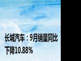 【长城汽车:9月销量同比下降10 88%】,长城汽车公告,2024年9月销量10 84万台,同比下降10 88%;今年累计销量85 38万台,同比下降1 18%。浏览全文>>