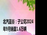 【北汽蓝谷:子公司2024年9月销量1 6万辆】,北汽蓝谷公告,子公司北京新能源汽车股份有限公司2024年9月产量为12994辆,去年同期为2907辆, 浏览全文>>