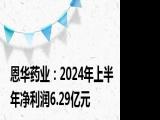 经济观察网讯 7月31日,恩华药业(002262)在深交所发布2024年半年度报告,本报告期营业收入27 63亿元,同比增加15 13%,净利润6 29亿元, 浏览全文>>