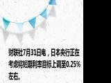 ,日本央行正在考虑将短期利率目标上调至0 25%左右。浏览全文>>