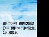 ,德国7月CPI同比增长2 3%,预期2 20%;7月CPI环比增长0 3%,预期0 2%。浏览全文>>