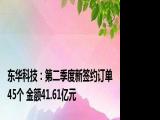 【东华科技:第二季度新签约订单45个 金额41 61亿元】,东华科技发布2024年第二季度经营情况简报,公司2024年第二季度新签约订单45个,金 浏览全文>>