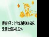 【顺络电子:上半年净利润3 68亿元 同比增长43 82%】,顺络电子发布2024年半年度报告,报告期公司实现营业收入26 91亿元,同比增长15 43% 浏览全文>>