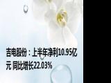 【吉电股份:上半年净利10 95亿元 同比增长22 03%】,吉电股份发布半年报,上半年实现营业收入68 87亿元,同比下降9 79%;净利润10 95亿元 浏览全文>>