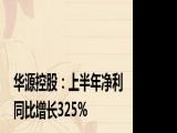 【华源控股:上半年净利同比增长325%】,华源控股公告,上半年实现营业收入12 32亿元,同比增长7 29%;归母净利润4211 87万元,同比增长325 17%。浏览全文>>