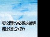 【宝洁公司预计2025财年总销售额将比上年增长2%至4%】,宝洁预计2025财年总销售额将比上年增长2%至4%。预计外汇将对总销售额增长造成约一个 浏览全文>>
