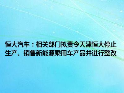 恒大汽车:相关部门拟责令天津恒大停止生产、销售新能源乘用车产品并进行整改