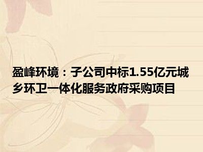 【盈峰环境:子公司中标1.55亿元城乡环卫一体化服务政府采购项目】,盈峰环境公告,全资子公司长沙中联重科环境产业有限公司收到了湖南省永州市零陵区城乡环卫一体化服务政府采购项目的中标通知书,中标合同总额为1.55亿元。