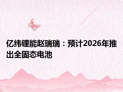 亿纬锂能赵瑞瑞:预计2026年推出全固态电池