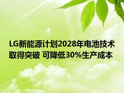 LG新能源计划2028年电池技术取得突破 可降低30%生产成本
