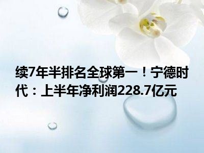 续7年半排名全球第一!宁德时代:上半年净利润228.7亿元