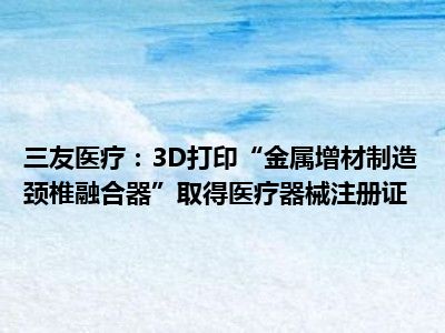 【三友医疗:3D打印“金属增材制造颈椎融合器”取得医疗器械注册证】,三友医疗公告,3D打印“金属增材制造颈椎融合器”取得医疗器械注册证。该产品适用于颈椎椎间融合术。