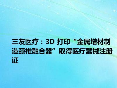 三友医疗:3D 打印“金属增材制造颈椎融合器”取得医疗器械注册证