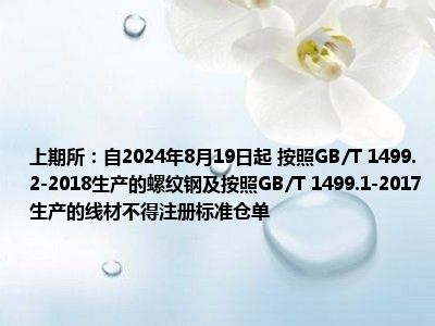 上期所:自2024年8月19日起 按照GB/T 1499.2-2018生产的螺纹钢及按照GB/T 1499.1-2017生产的线材不得注册标准仓单