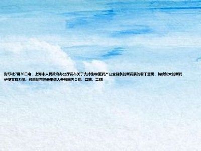 财联社7月30日电,上海市人民政府办公厅发布关于支持生物医药产业全链条创新发展的若干意见,持续加大创新药研发支持力度。对由我市注册申请人开展国内Ⅰ期、Ⅱ期、Ⅲ期